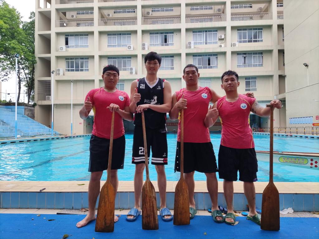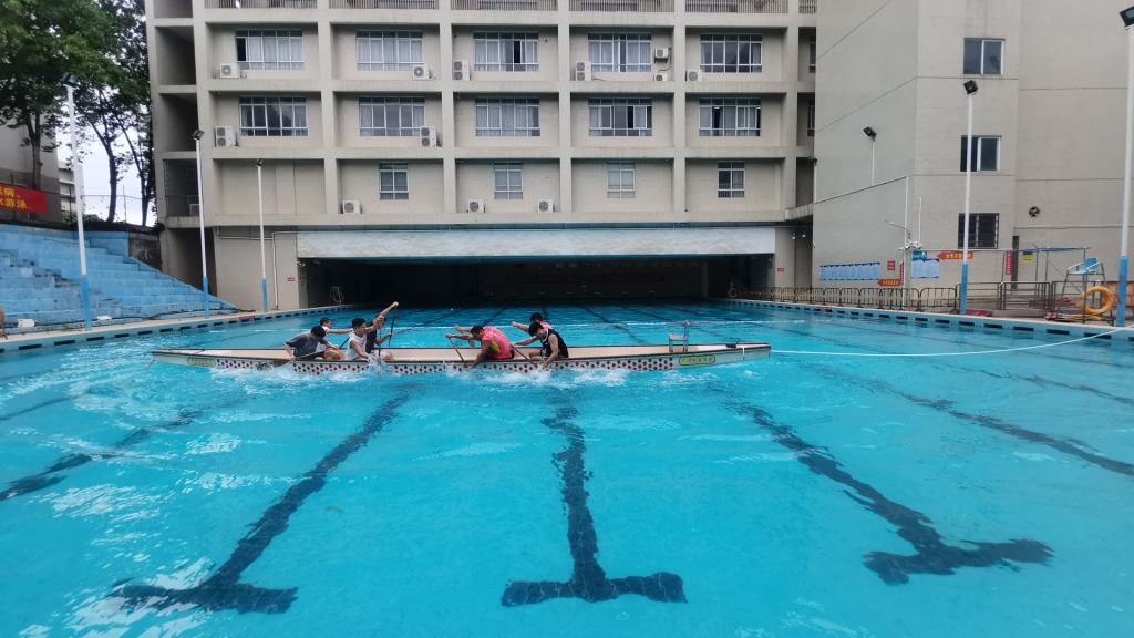 的龙舟拔河项目代表队抵达黄埔校区游泳场进行预赛。龙舟拔河项目参赛队伍由3位男生和1位男教师组成,预赛采取循环赛模式,积分最高的前两名晋级决赛。经过激烈的角逐,轮机工程51吃瓜